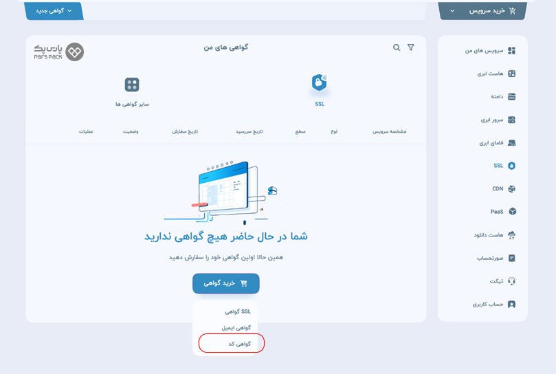 - وارد پنل کاربری شوید و به بخش SSL بروید.