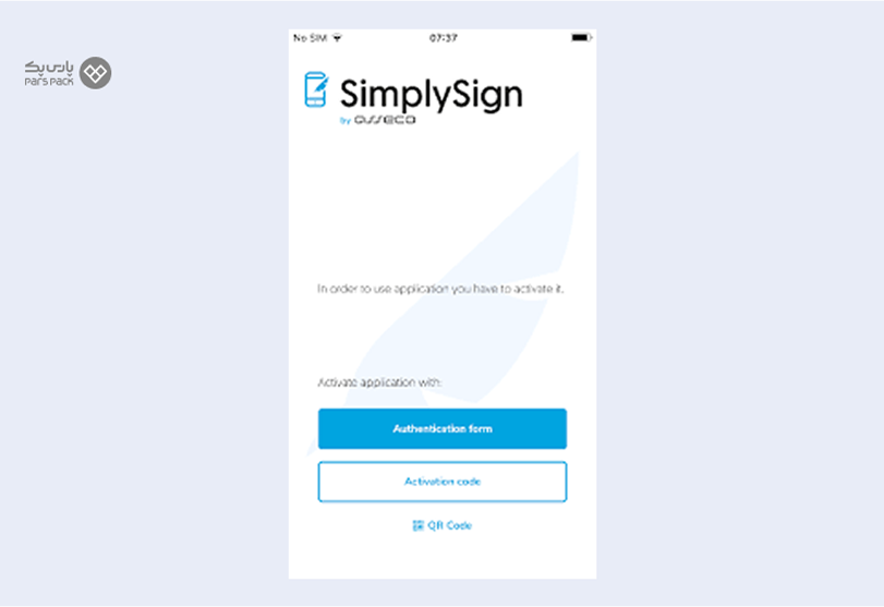 - اپلیکیشن SimplySign را از App Store یا Google Play دانلود و نصب کنید. میتوانید این اپلیکیشن را به طور مستقیم از لینکهای زیر دریافت نمایید: