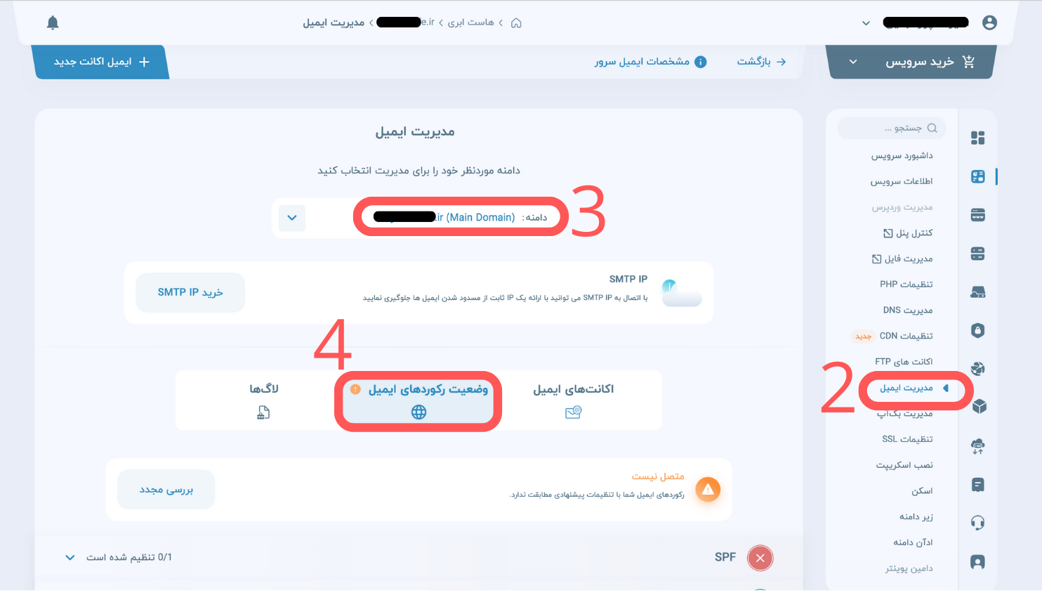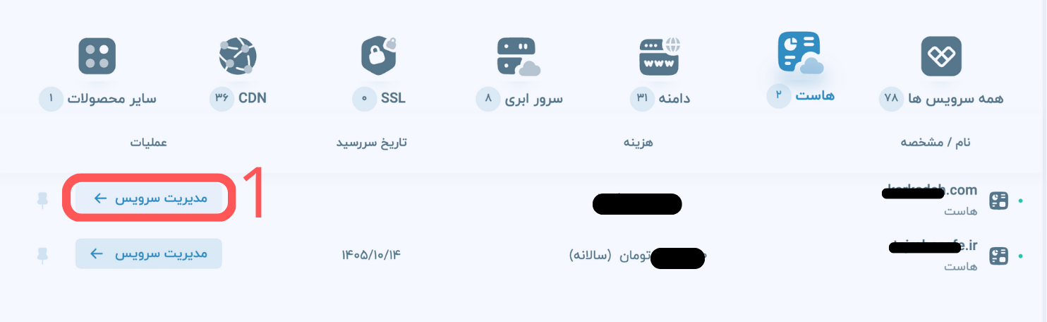 - پس از ورود به بخش «مدیریت سرویس» مربوط به هاست خود