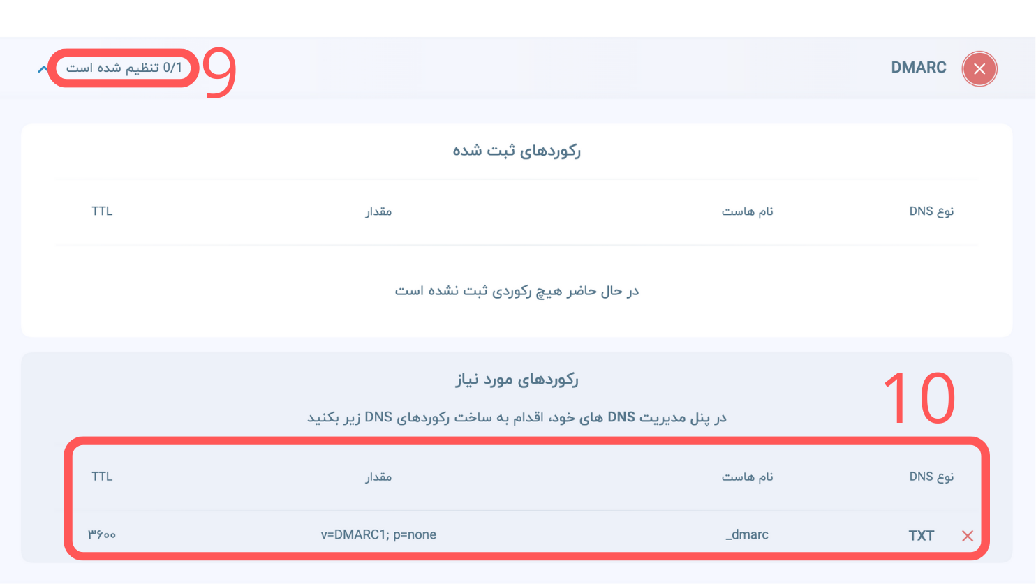 فضای مربوط به تنظیمات DMARC را باز کنید