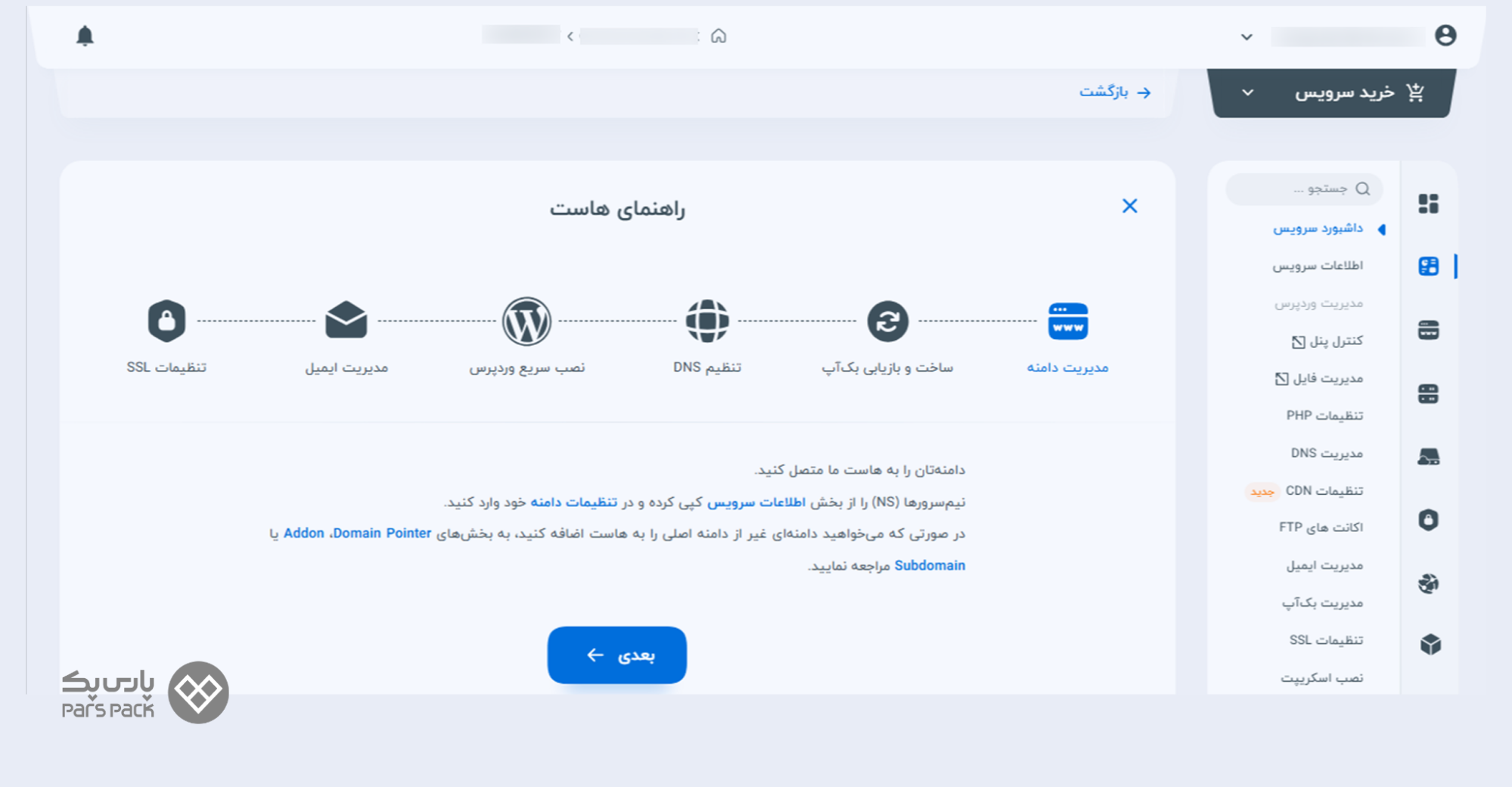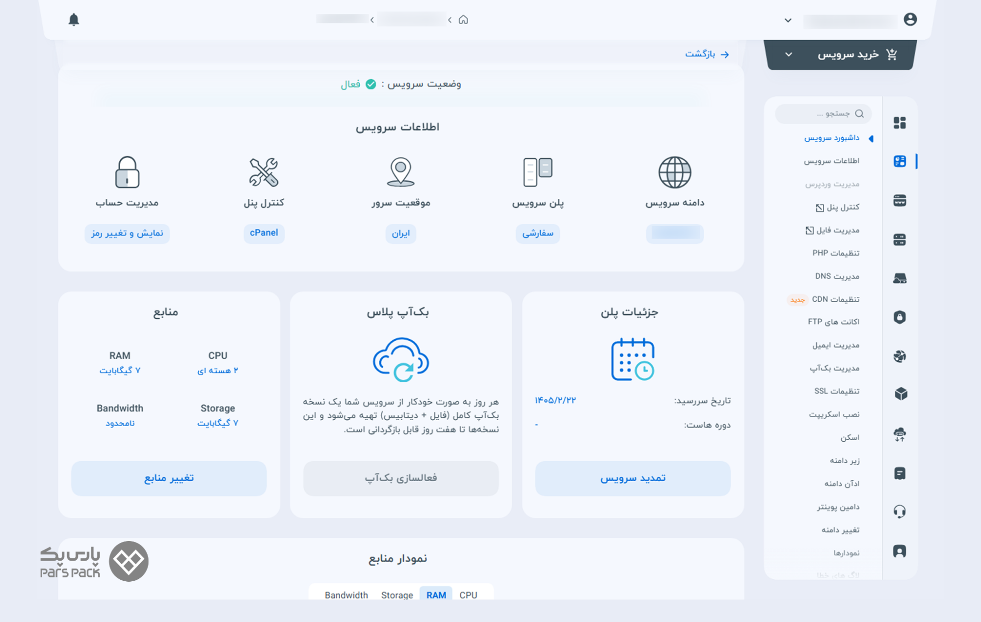 شما روی هر هاست ساختهشده کنترل کامل دارید. با انتخاب دکمه «مدیریت سرویس» وارد داشبورد سرویس هاست میشوید. در این بخش مانند سایر هاستها، اطلاعات سرویستان با جزئیات کامل قابل مشاهده خواهد بود.