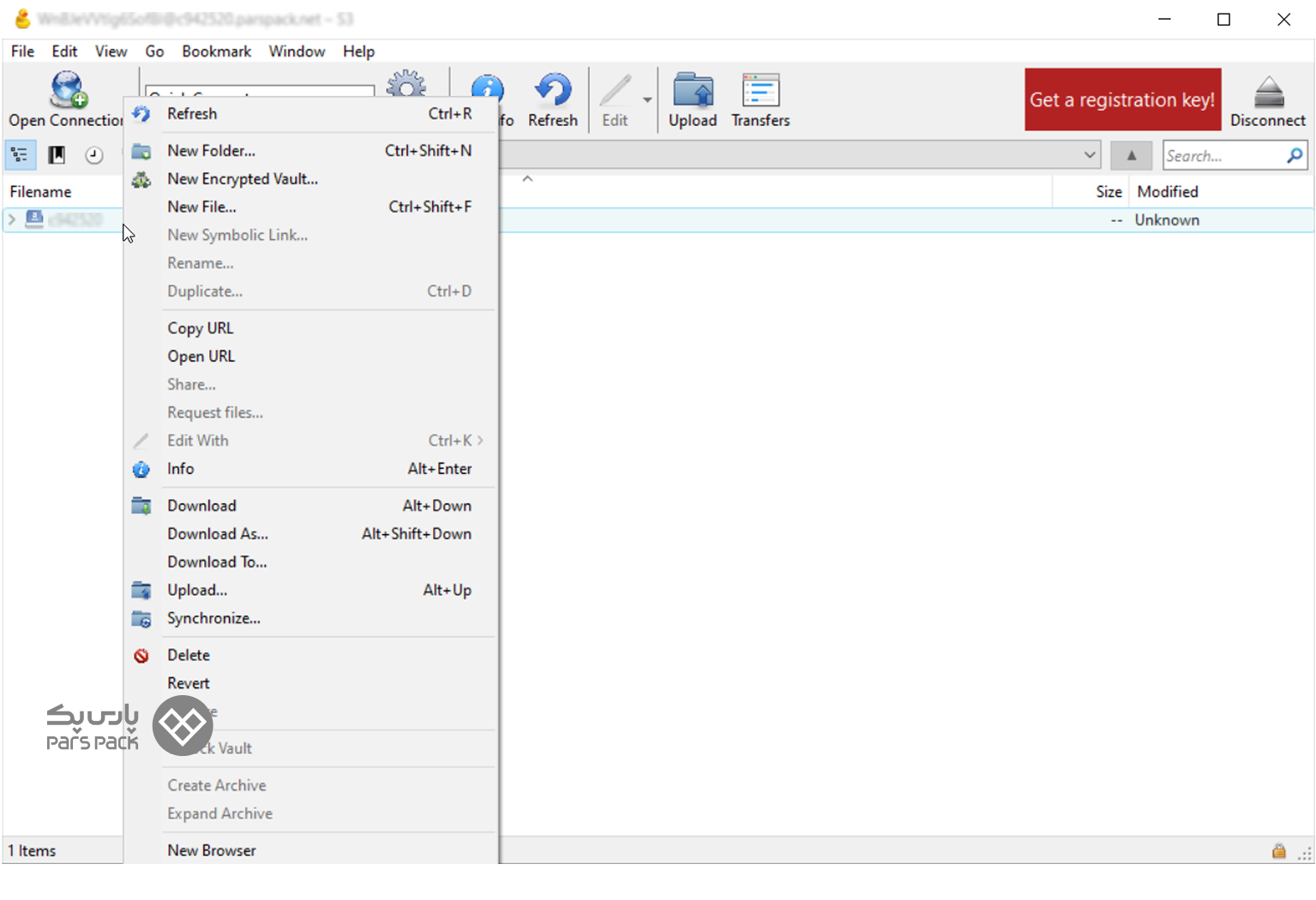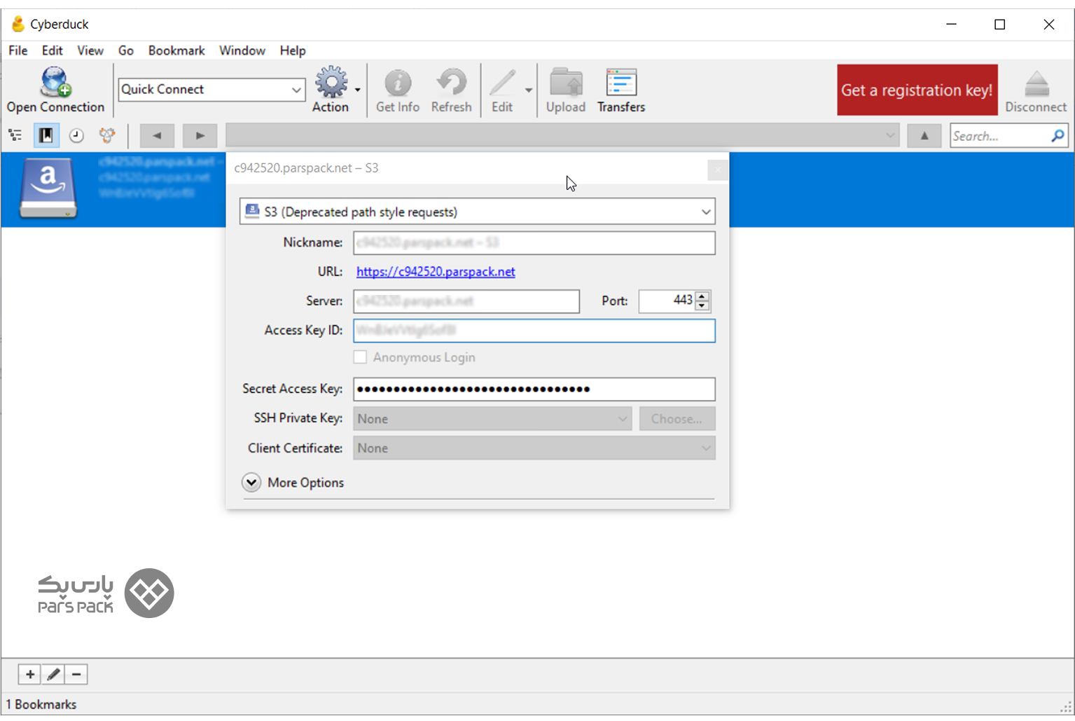 ۴. اتصال به فضای ابری پارسپک با نرمافزار Cyberduck