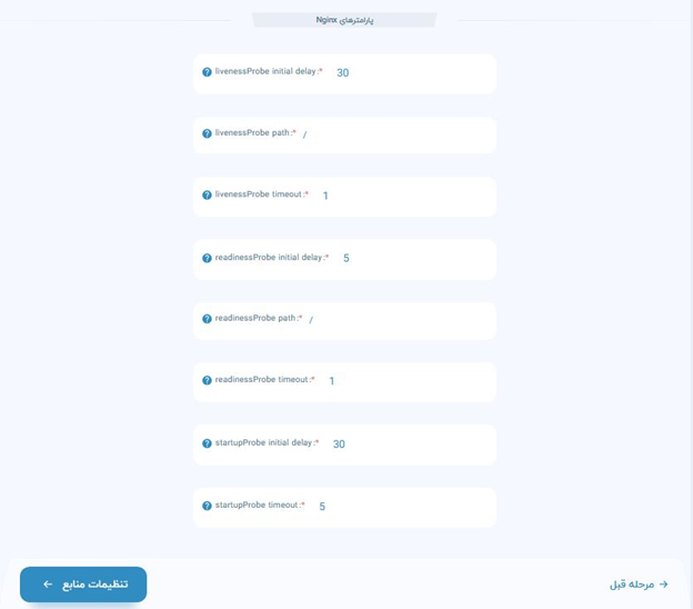 livenessProbe path: این متغیر تعیین میکند که بعد از استارت شدن برنامه شما، به چه path از ساب دامین باید probe زده شود. مقدار پیشفرض آن «/» در نظر گرفته شده است.